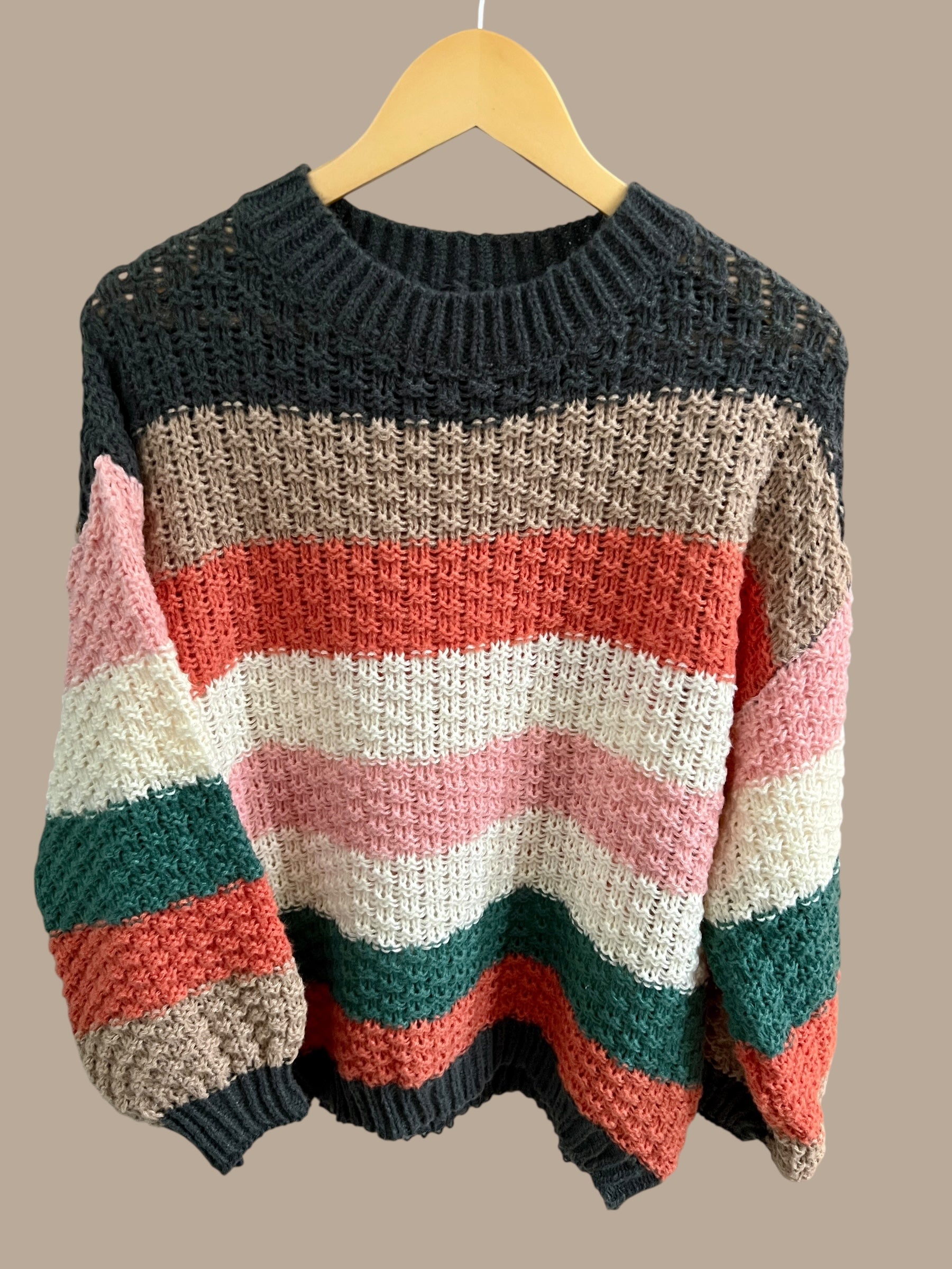 Our Color Block Striped Chunky Sweater is the definition of cozy meets chic. Made in a mega-soft knit, it keeps you warm without the itch. The bold yet coordinated color palette makes it easy to pair with denim, trousers, or leggings—giving you endless outfit options. Comfy, stylish, and an instant mood-lifter.