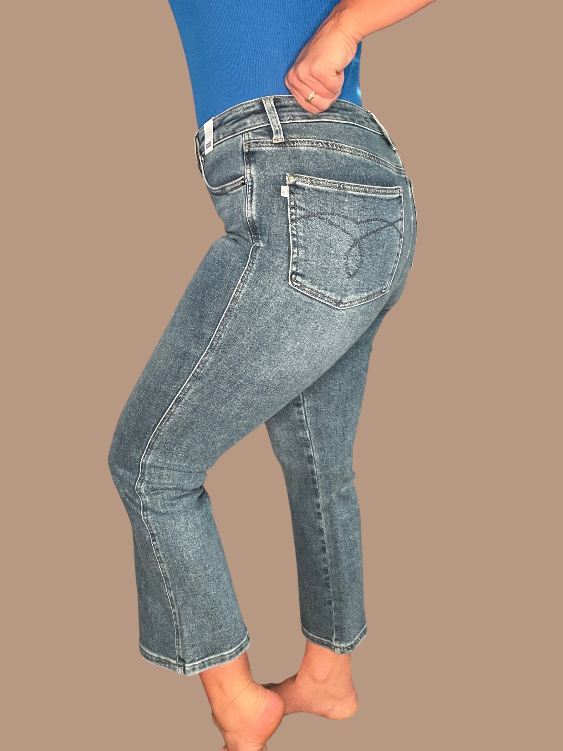 The Judy Blue High Waist Tummy Control Flare Cropped Jeans are your new go-to pair for flattering, everyday style. Designed with built-in tummy control for a smooth, sculpted fit and a high-rise waist that holds you in comfortably.